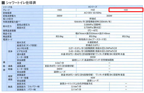 洗浄便座 シャワートイレ Hシリーズ[H41][貯湯式][共用サイズ][暖房便座][キレイ便座]