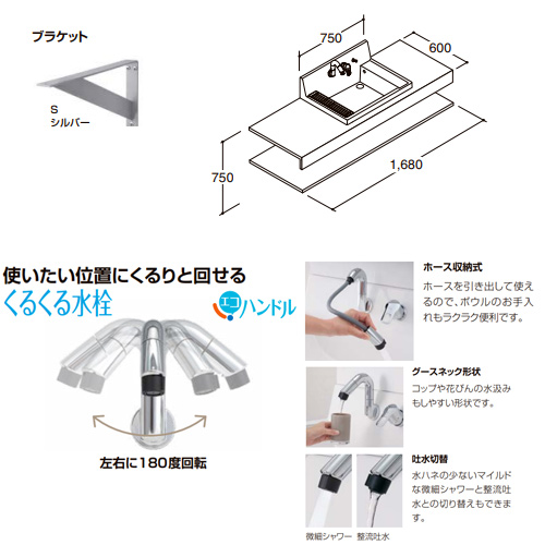 ・設置高さ:床から750mm(ボウルあふれ面高さは800mm)