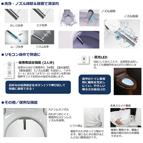また、夜光LEDがあるので、夜中のトイレにもやさしい機能があります。