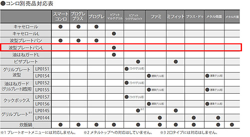 ※波型プレートパンは、オートメニューに対応していない機種があります。