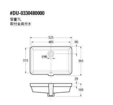 洗面器単品[デュラビット][Vero][アンダーカウンター式][角形][525×365]