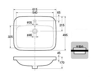 ・水栓取付穴径:φ35 1ヶ所
