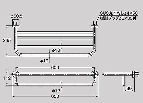 タオルラック[エムコ社][システム01][長さ:650mm][バー付き][クロム][アクセサリー]