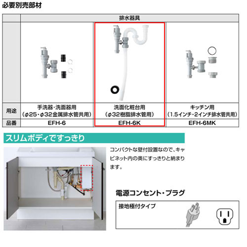 即湯システム[1L][洗面化粧台用][排水金具セット]