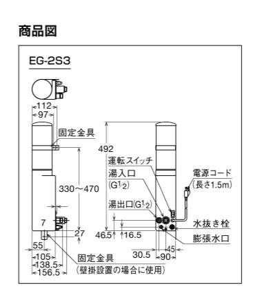 ※設置条件により出湯温度は約33〜43度になる場合があります。