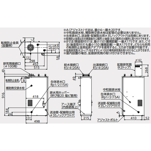 ※減圧弁、逃し弁、Φ100排気筒、配管部材、油タンク、リモコンコード等は別売です。