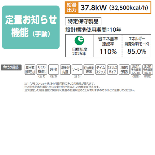 ・給湯:37.8kW(32,500kcal/h)