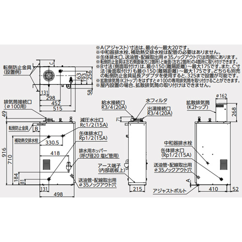 ※Φ100排気筒、配管部材、油タンク、リモコンコード等は別売です。