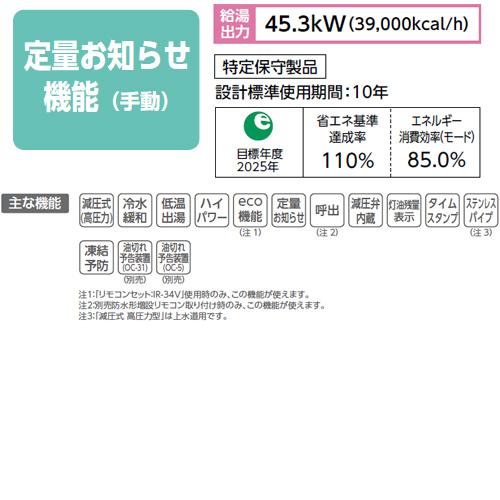石油給湯器[エコフィール][台所リモコンセット][給湯専用][手動][お知らせ][減圧式][高圧力][屋外据置型][屋内据置型][4万キロ][ステンレス外装]