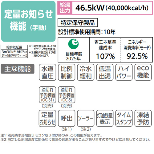 ・給湯専用 定量お知らせタイプ(手動)