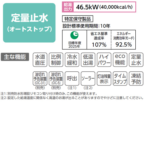 ・給湯:46.5kW(40,000kcal/h)
