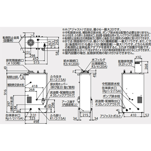 ※Φ100排気筒、配管部材、油タンク、リモコンコード等は別売です。