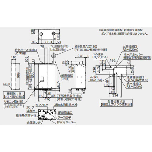 石油ふろ給湯器[エコフィール][本体+FF用給排気筒付属][オート][水道直圧式][屋内壁掛型][上方排気][強制給排気][4万キロ]