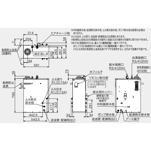 石油ふろ給湯器[エコフィール][本体+排気筒セット付属][フルオート][水道直圧式][屋内据置型][上方排気][強制排気][4万キロ]