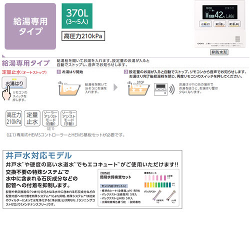 井戸水や硬度の高い水道水でも対応できるエコキュートです。