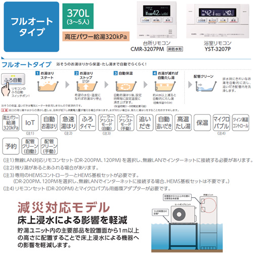●♪【10年保証付】【工事費込】【近畿エリア限定】エコキュート[高置台セット][フルオート][370L][スリム][パワフル高圧][減災対応モデル][一般地][無線リモコン脚部カバー][スマイル10]