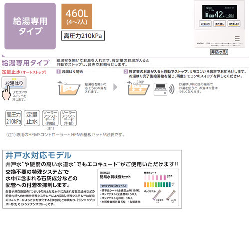 井戸水や硬度の高い水道水でも対応できるエコキュートです。
