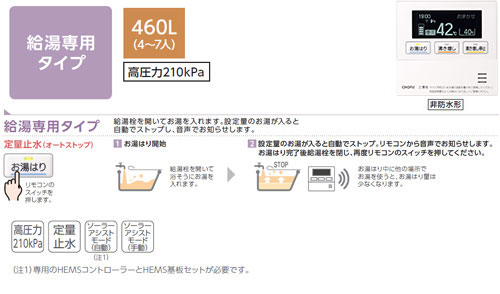♪【10年保証付】【工事費込】【近畿エリア限定】エコキュート[給湯専用][460L][角型][標準圧][寒冷地][標準リモコン脚部カバー][スマイル10]