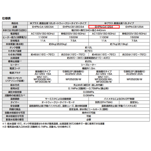 ※2:電気温水器入口の水圧(流動時)0.1MPa、流量4L/分の条件にて