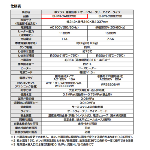 品番:EHPN-CA8ECS2