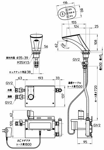 洗面用蛇口 トッカータ[台][サーモワンホール洗面混合栓][タッチ式][スパウト155mm][一般地]