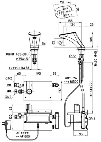 洗面用蛇口 toccata[台][サーモワンホール洗面混合栓][タッチ式][スパウト155mm][一般地]