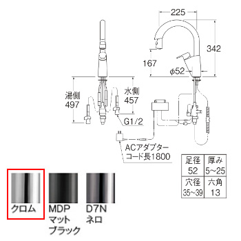 キッチン用蛇口[台][センサー水栓][自動水栓][混合水栓][ホース引出式][上面・吐水口センサー][AC100V][スパウト225mm][クロム][一般地]