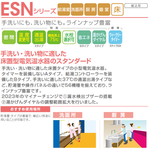 手洗い・洗い物に適した床置型電気温水器のスタンダードシリーズ