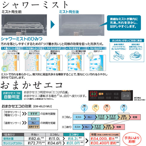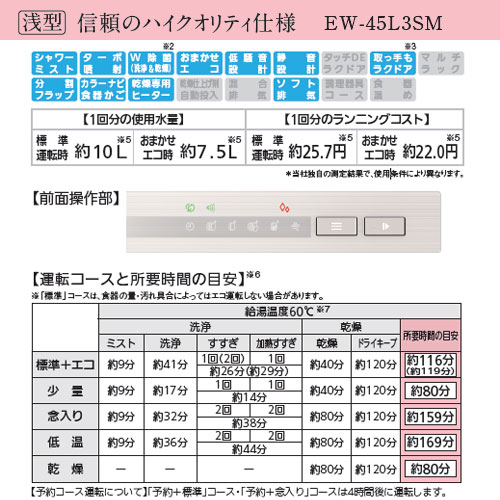 ※標準エコのコースは、食器の量や汚れ具合によってはエコ運転しない場合があります。