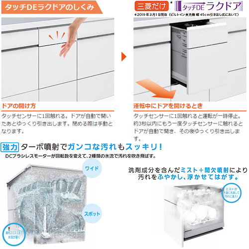 ビルトイン食洗機[新設用][スライドオープンタイプ][ドアフル面材型][深型][幅45cm][奥行65cm][約6人用][鏡面ブラック]