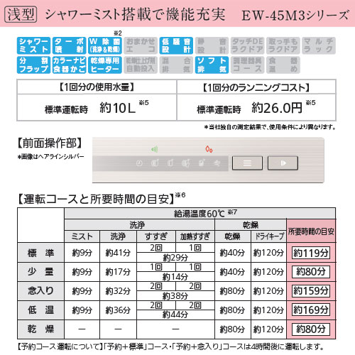 ・運転コース:7コース(標準・少量・念入り・低温・乾燥・予約2コース)※予約コースは標準・念入りのみ