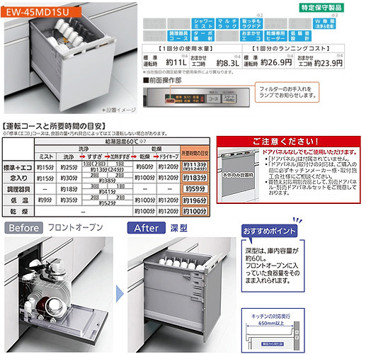 ビルトイン食洗機[取替用][スライドオープンタイプ][ドアパネル型][深型][幅45cm][奥行65cm][約6人用][化粧パネル対応][ステンレスシルバー]