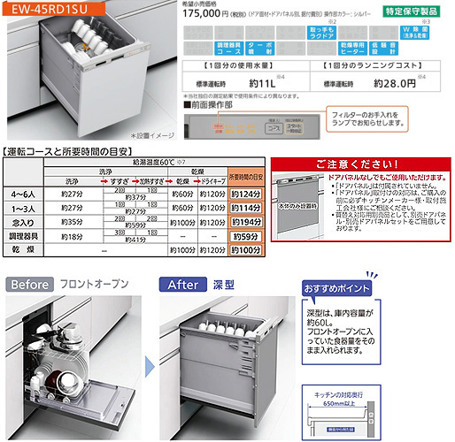 ビルトイン食洗機[取替用][スライドオープンタイプ][ドアパネル型][深型][幅45cm][奥行65cm][約6人用][化粧パネル対応][シルバー]
