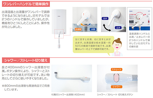 ・付属品:シャワー出湯管400mm、本体取付金具(1個)、一軸型減圧弁(1個)、減圧弁用パッキン(1個)