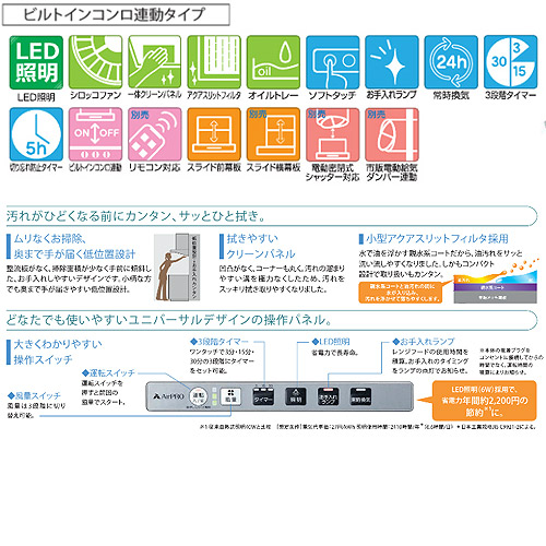 毎日のお手入れがとってもラクな使う人に優しいレンジフード。汚れがひどくなる前にカンタン、サッとひと吹き。どなたでも使いやすいユニバーサルデザインの操作パネル。