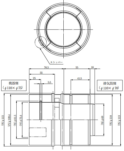 二重異径ジョイント[機器:φ110×φ75][排気:φ110×φ70][排気部材][給湯器部材]