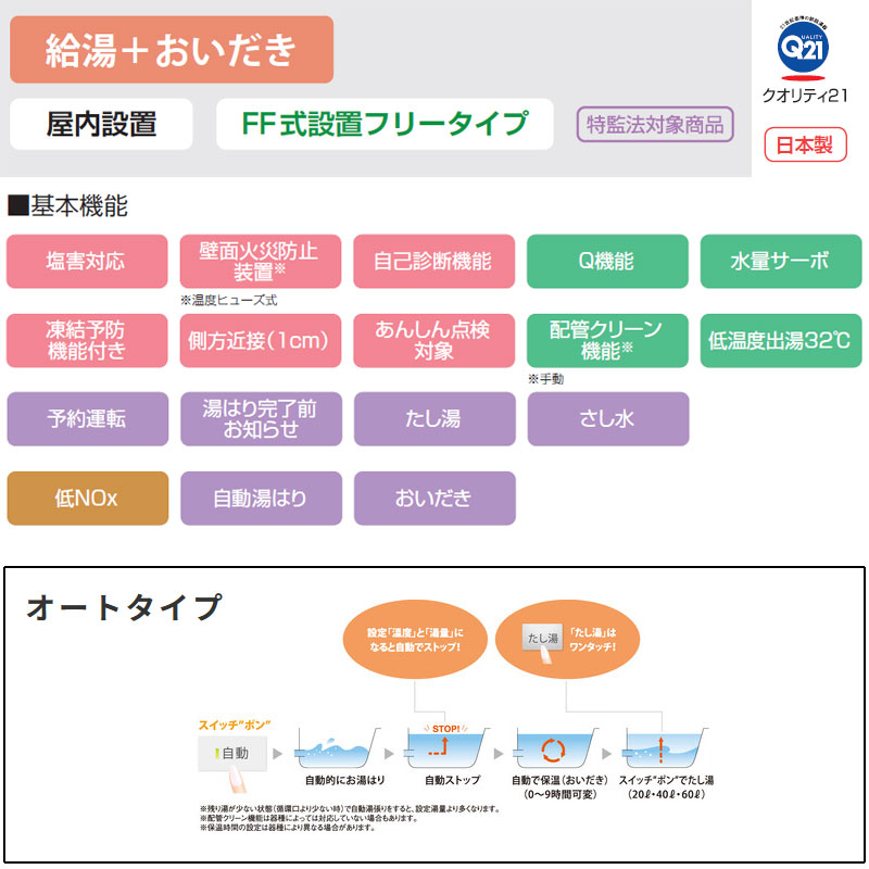 ガスふろ給湯器[浴室・台所リモコンセット][屋内壁掛型][上方排気][強制給排気][オート][20号][15A]