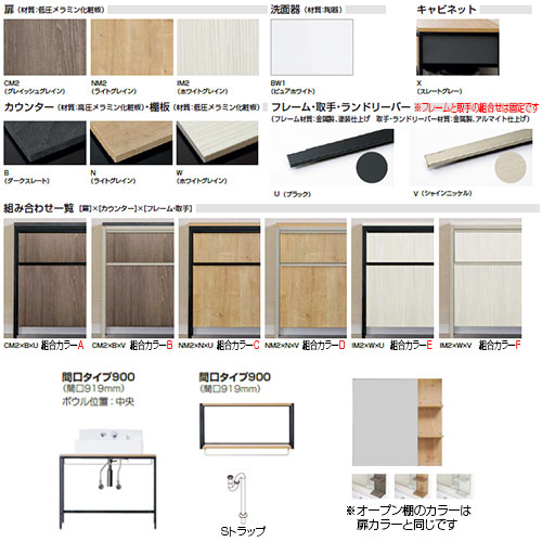 ※画像1枚目のイメージ画像は、「カウンター棚板:ダークスレート、フレーム・ランドリーバー:シャインニッケル ミラーオープン棚:グレイッシュグレイン 組合せカラーB:ダーク×ニッケル(BXV)」です。