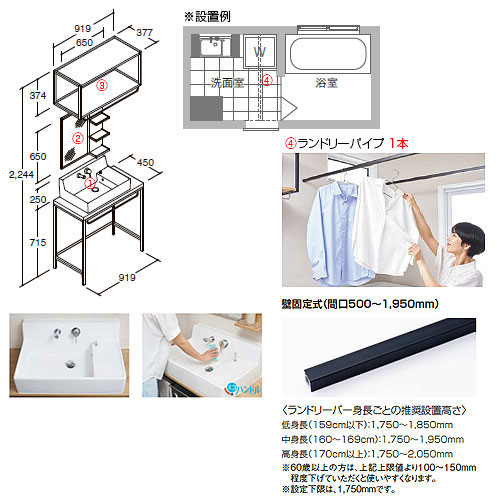 ※ランドリーバーは間口500〜1950mmまで。
