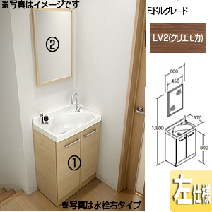 ●洗面化粧台セット リフラ[間口600mm][高さ1800mm][シングルレバー混合水栓(グースネック)][ポップアップ式][ジャバラトラップ][木枠付1面鏡][クリエモカ][水栓左タイプ]