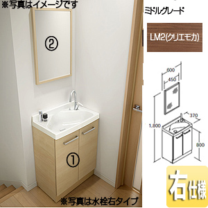 ●洗面化粧台セット リフラ[間口600mm][高さ1800mm][シングルレバー混合水栓(グースネック)][ポップアップ式][ジャバラトラップ][木枠付1面鏡][クリエモカ][水栓右タイプ]