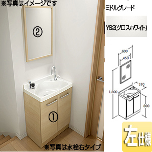 ●洗面化粧台セット リフラ[間口600mm][高さ1800mm][シングルレバー混合水栓(グースネック)][ポップアップ式][ジャバラトラップ][木枠付1面鏡][グロスホワイト][水栓左タイプ]