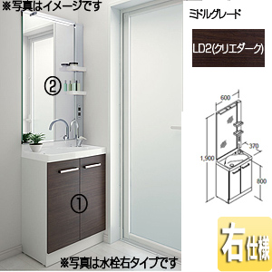 ●洗面化粧台セット リフラ[間口600mm][高さ1900mm][シングルレバー混合水栓(グースネック)][ポップアップ式][ジャバラトラップ][1面鏡(大型鏡)][LED][クリエダーク][水栓右タイプ]