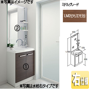 ●洗面化粧台セット リフラ[間口600mm][高さ1900mm][シングルレバー混合水栓(グースネック)][ポップアップ式][ジャバラトラップ][1面鏡(大型鏡)][LED][クリエモカ][水栓右タイプ]