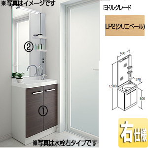●洗面化粧台セット リフラ[間口600mm][高さ1900mm][シングルレバー混合水栓(グースネック)][ポップアップ式][ジャバラトラップ][1面鏡(大型鏡)][LED][クリエペール][水栓右タイプ]