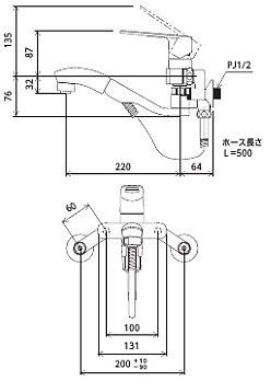 キッチン用蛇口[壁][シングルレバー混合水栓][オープンシャワーホース][一般地]