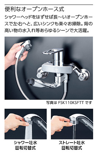 FSK110KZSFT|KVK|キッチン用蛇口[壁][シングルシャワー付混合水栓][スパウト220mm][寒冷地]|リフォームネクスト