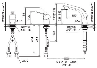 洗面用蛇口[台][シングルレバー式洗髪シャワー混合水栓][泡沫][シャワー引出][一般地]