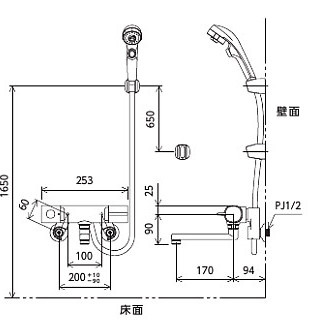 浴室用蛇口[壁][浴槽・洗い場兼用][サーモスタット付シャワーバス混合水栓][eシャワー][3wayワンストップシャワーヘッド付][一般地]