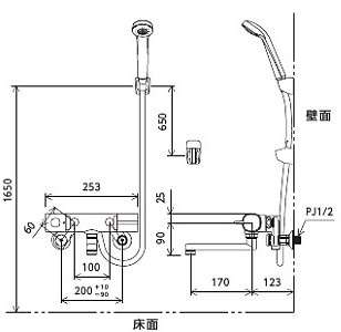 浴室用蛇口[壁][浴槽・洗い場兼用][サーモスタット付シャワーバス混合水栓][楽締めソケット付][eシャワー][一般地]